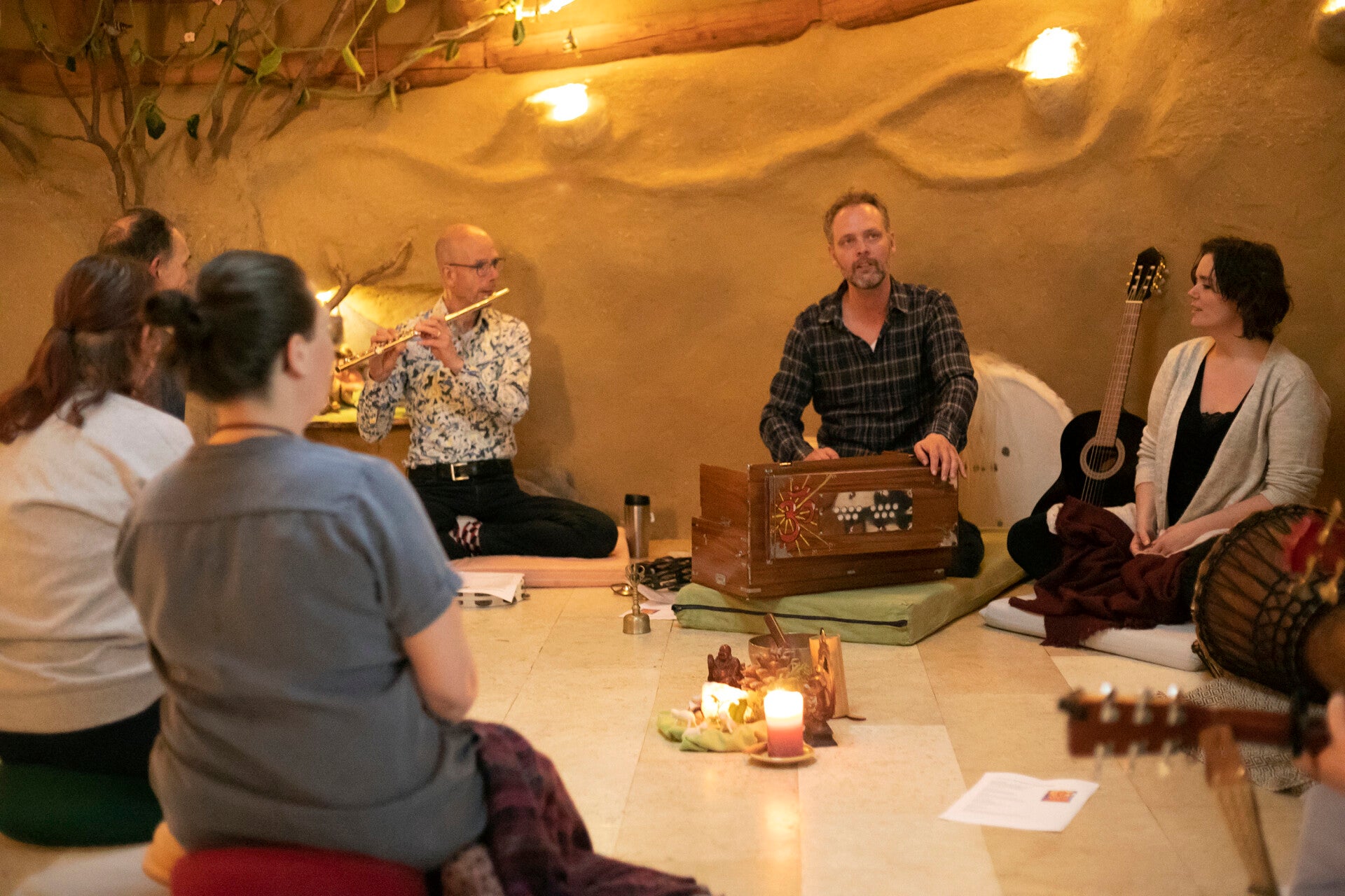 Muziek die voortkomt uit mediatie of muziek die teruggaat naar meditatie... It is time, it is time to come home. Welcome home, welcome home, welcome home... Mediatiemiddag bij James Bampfield.